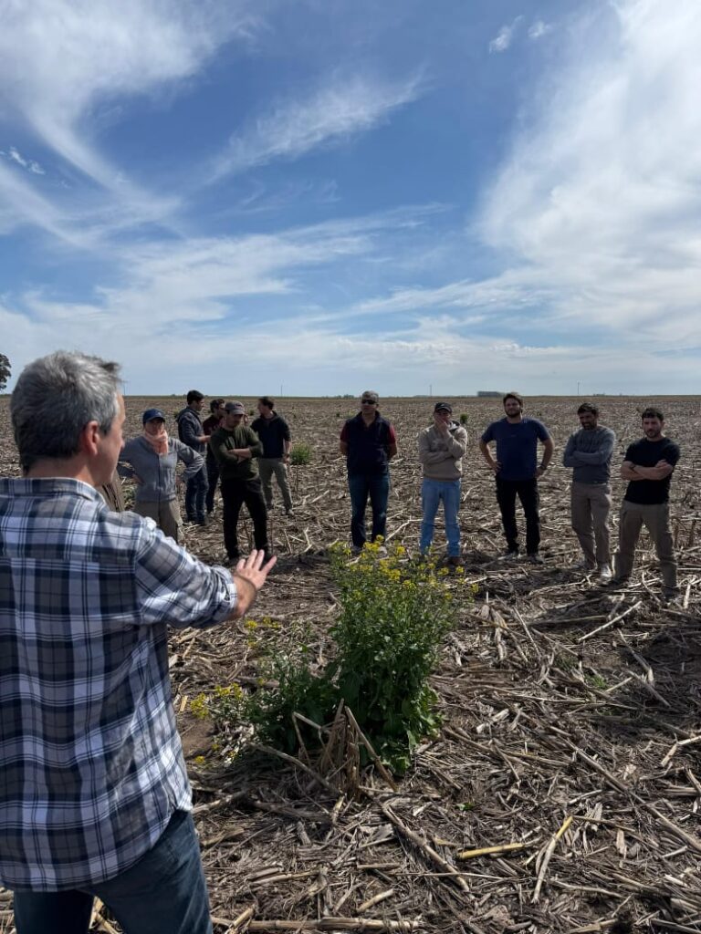 Lo primero que quiero compartirles es que vengo del futuro o, mejor dicho, del sudeste de la provincia de Buenos Aires donde en 2014 empezaron a aparecer los problemas con raigrás resistente y nabolza (nabo con el gen de resistencia de la colza rr, Brassica rapa). La nabolza comenzó a diseminarse en la zona en ese mismo año y en 2015 ya teníamos el 1% de los lotes afectados. Para 2016 ese porcentaje subió al 8%; en 2017 al 18%; en 2018 al 27%; en 2019 alcanzó el 53%; en 2020, el 80% y, en 2025, el 90%. De estos, el 5% está solo en cabeceras, un 70% en lotes aislados o manchones, y un 15% con alta densidad de maleza.